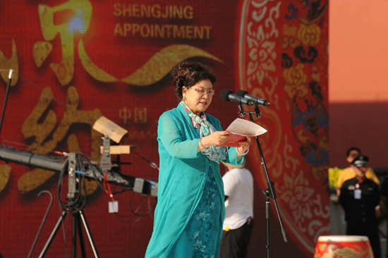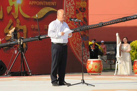 第九届中国文联副主席、中国曲艺家协会名誉主席刘兰芳宣布首届中国旗袍文化节开幕。