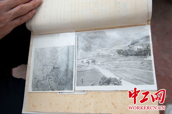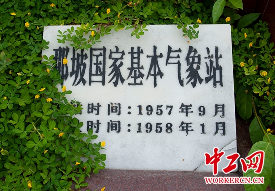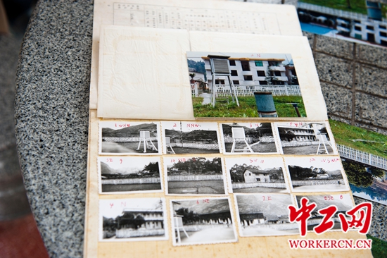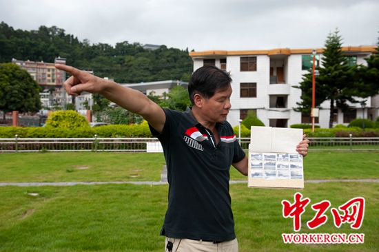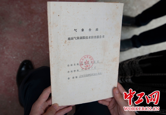 那坡县气象局工作人员苏贵忠向记者展示今昔台站变迁 李逸萌摄