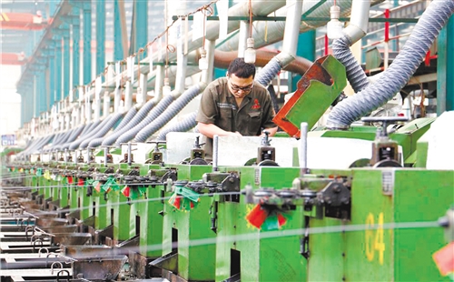 在河北永年区工业园区的深圳大和实业有限公司,工人在高端紧固件生产线上作业。 胡高雷摄
