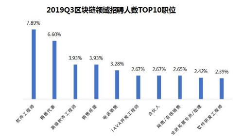 对于真正将区块链技术或产品作为核心业务的企业,技术人才和销售人才都是不可或缺的。报告显示,从行业分布看,2019年三季度,互联网/电子商务和计算机软件行业对区块链人才的招聘需求占所有行业的比例分别为37.14%和14.45%,占需求主流。需求前十的行业还包括IT服务、基金/证券/期货/投资、教育/培训/院校等。