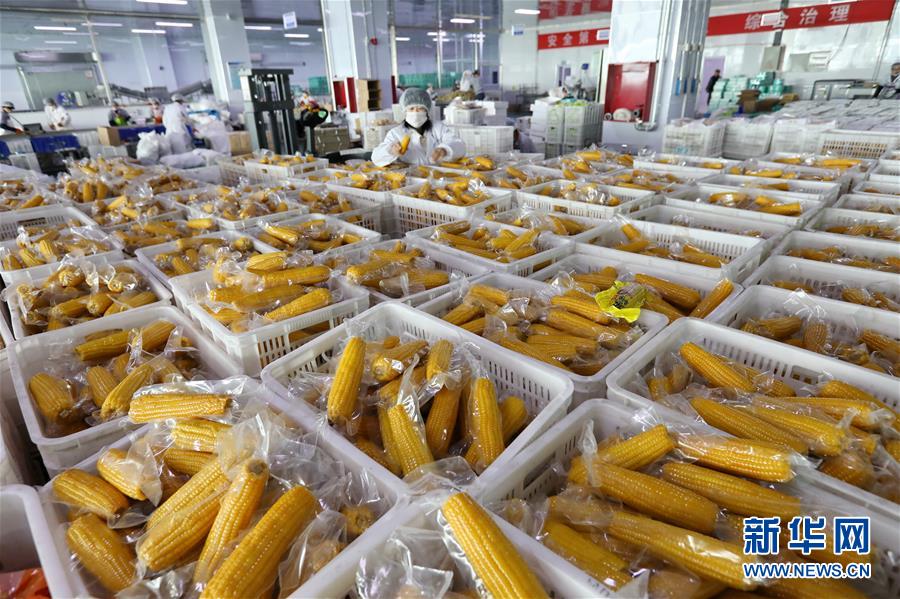 近年来,河北省张家口市万全区利用当地鲜食玉米种植优势,以工业化鲜食玉米加工推动农业产业化,推行“线上”和“线下”相结合的销售模式,取得良好收益。目前,该区已发展鲜食玉米种植面积6万余亩,加工企业10余家,带动4万多农民实现增收。新华社记者 牟宇 摄