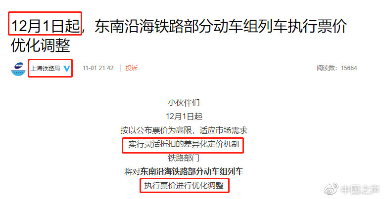 自2013年铁道部被撤销,铁路政企分开以来,铁路部门就在持续探索市场化发展的道路。火车票搞包括“打折”在内的各种“优化调整”,实际上早已不是什么新鲜事——早在2016年,国家发改委就曾下发通知宣布,“从2016年起,放开高铁动车票价,改由铁总自行定价”。自那以后,火车票价尤其是高铁动车组列车的票价,就越来越灵活,出现了“打折浮动”、“一日一价”等更加丰富多样的定价形式。