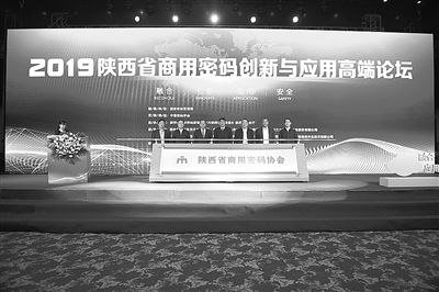图为与会领导和专家为陕西省商用密码协会成立揭牌。资料照片