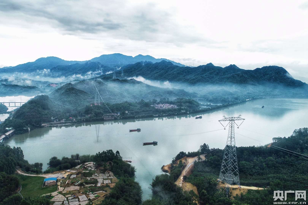 昆柳龙直流工程广东段跨越北江线路。 (央广网发 李志杰 陈海东 摄)