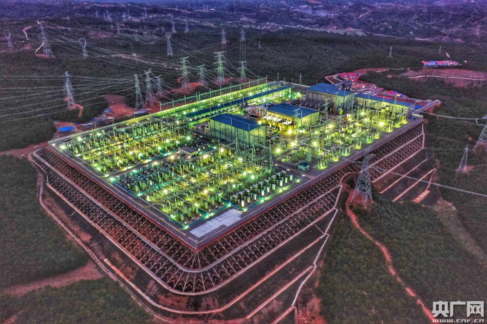 昆柳龙直流工程±800千伏昆北换流站进行灯光测试。 (央广网发 杨健 李志杰 摄 )
