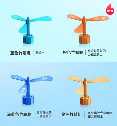 本次“95公益周”,饿了么蓝骑士也将深度参与,他们总计每捐赠1.14万公里的里程,饿了么便通过中国扶贫基金会为贫困地区儿童捐赠一份营养餐(包含一盒学生奶和一颗卤蛋),以7天为一个周期(每个周期最多875份),直至2021年4月。饿了么公益还针对此“蓝骑士•挑战爱的里程”项目,新增设计了代表公益的橙色竹蜻蜓,每月授予捐里程最多的20名蓝骑士。