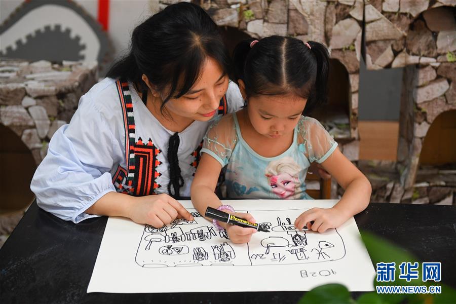 9月2日,在长沙市岳麓幼儿教育集团第二幼儿园,老师指导小朋友进行食谱绘画。 位于湖南省长沙市的岳麓幼儿教育集团第二幼儿园,通过餐前小故事、农作物辨认、食谱绘画等方式,帮助孩子们从小树立爱惜粮食、反对浪费的意识,培养孩子们良好的用餐习惯。 新华社记者 陈泽国 摄
