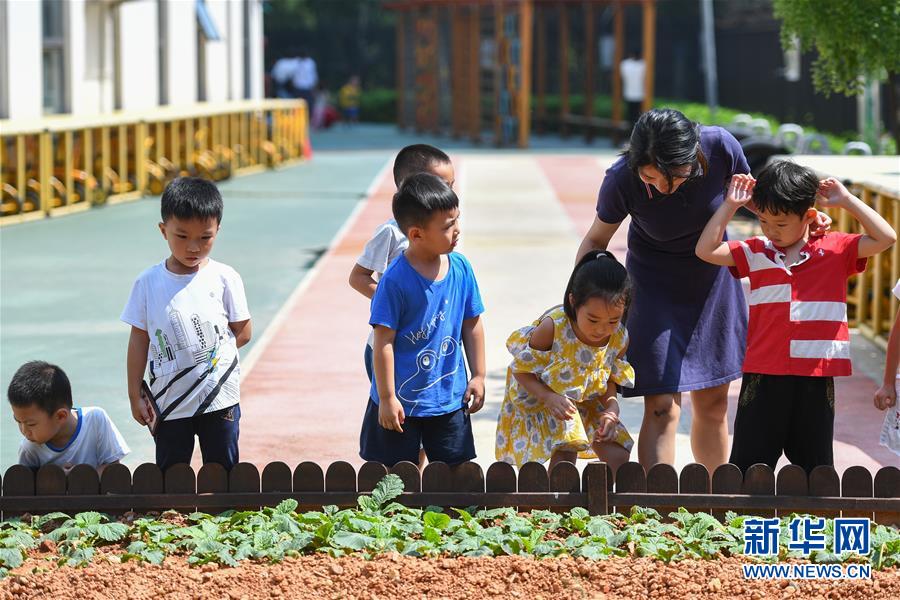 9月2日,在长沙市岳麓幼儿教育集团第二幼儿园,老师帮助小朋友们辨认农作物。 位于湖南省长沙市的岳麓幼儿教育集团第二幼儿园,通过餐前小故事、农作物辨认、食谱绘画等方式,帮助孩子们从小树立爱惜粮食、反对浪费的意识,培养孩子们良好的用餐习惯。 新华社记者 陈泽国 摄