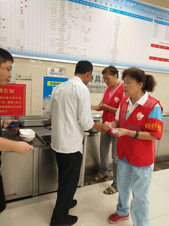 同时上城区机关事务中心联合团区委、区志愿者协会,在2个餐盘回收处,每天派驻4位“节约用餐督导员”,监督机关职工“光盘行动”落实情况,对存在浪费情况的职工进行现场劝导和相应记录。