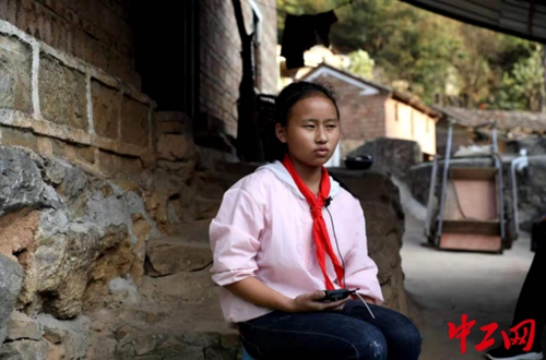 云南省广南县五珠乡六良箐村波糯箐小组苗族女孩侯胜莉接受记者采访。侯胜莉是广南一小少数民族女童班学生