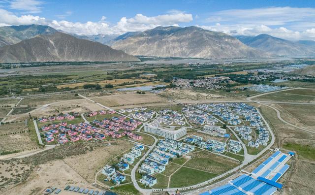 西藏拉萨市曲水县才纳乡四季吉祥村全景。这里是西藏首批易地扶贫搬迁安置点之一(2020年8月24日摄,无人机照片)。新华社记者 孙非 摄
