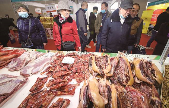 12日,2020长三角供销合作社名优农产品展销会在南京国际博览中心举行。图为展销会上腌制品受到市民追捧。新华日报记者 陈 俨摄 新华日报通讯员 刘国华