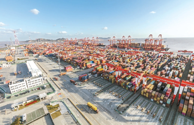 11月3日拍摄的上海洋山港集装箱码头。新华社记者 王翔摄