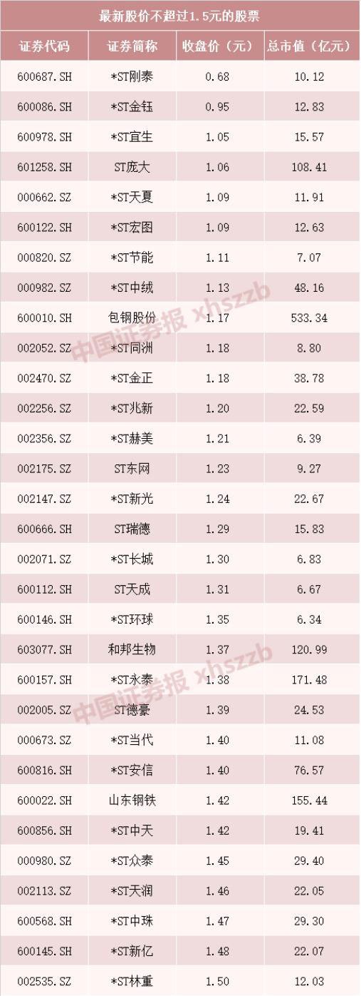 Wind数据显示,截至12月11日,A股有31只个股收盘价不超过1.5元(剔除停牌股票)。目前A股没有市值低于3亿元的个股,市值最低的是*ST富控,总市值为4.72亿元。