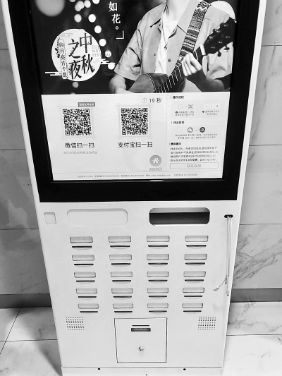 汉光百货2层的来电共享充电宝机柜仍然维持1元1小时的价格,机柜内20个充电宝被借空。