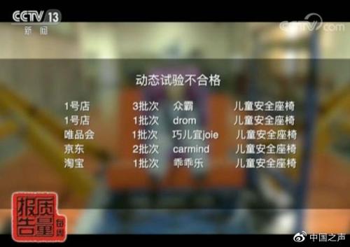 据央视《每周质量报告》报道,上海市市场监管局近期抽检了市面上60个批次的儿童座椅,分别进行动态试验及燃烧试验,发现多批次多品牌产品存在问题,其中还包括英国知名品牌巧儿宜的产品。