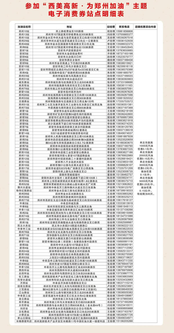 本次试点发放加油消费券总计52万张,价值共计1000万元,其中160元—16元券40万张,300元—30元券12万张。消费者先领先得,每人最多领取一张,领完为止。领取后,消费券将发放至消费者支付宝卡包,郑州区域内所有支持“支付宝”支付的中国石油加油站消费均可抵扣。持加油消费券的消费者可同时享受加油站的其他优惠活动。