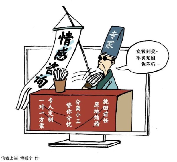 专家认为,随着社会对情感咨询需求的逐渐增多,情感咨询行业鱼龙混杂,相关部门应加大监管力度,助推行业良性发展。