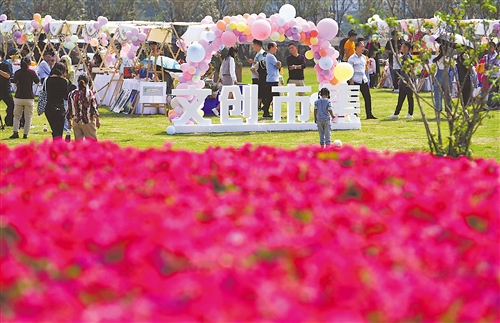 10月1日,安徽首个以青年为主题的田园项目——青年创意田园在合肥东部新中心揭开面纱,这片用都市里的田园升级而来的创意田园项目,设置了文创大赛、潮玩音乐节、先锋影像展、文创市集、星空露营等五大活动,为市民们带来丰盛的节日文化大餐。记者 白海星摄