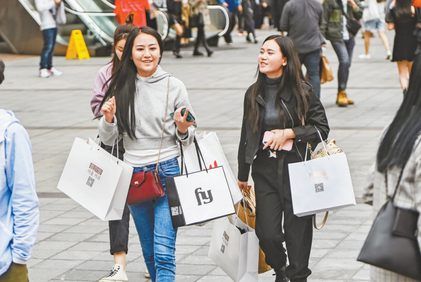 10月7日,江北区观音桥商圈热闹非凡,不少市民、游客前来游玩消费。记者 龙帆 罗斌 摄/视觉重庆