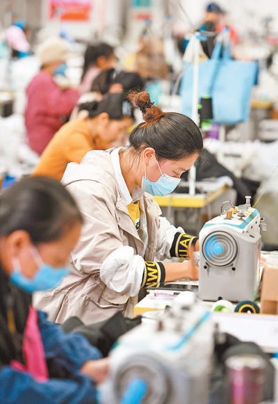 11月5日,在江西省丰城市上塘镇的一家服饰公司,工作人员加紧生产,为“双11”备足货品。