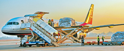 11月11日,一架满载货物的飞机抵达江苏南通兴东国际机场,为“双11”提供货运助力。