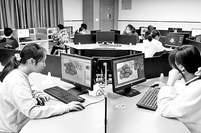 重庆市北碚区职业教育中心网络营销实训室内,学生在进行网购商品海报设计制作。新华社发