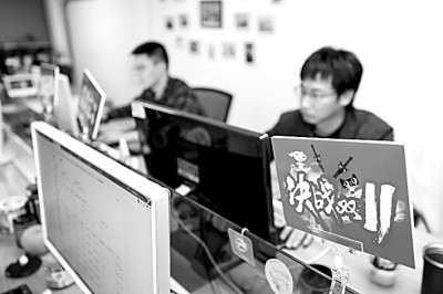 在江苏省无锡市一家电商企业,网络营销人员忙着解答顾客疑问,应对网络购物高峰。朱吉鹏摄/光明图片