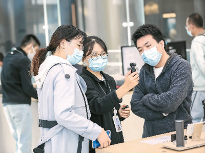 消费者在大疆门店了解产品。