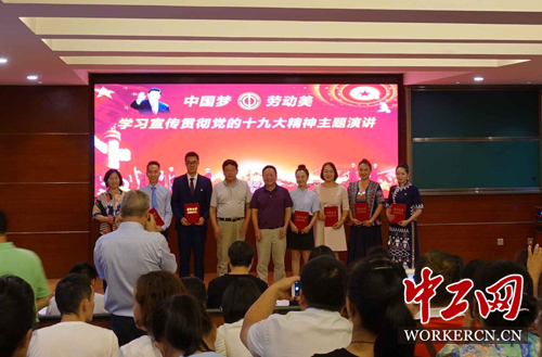 中工网讯 6月4日,由云南普洱市总工会主办、市国资委协办的“中国梦·劳动美—学习宣传贯彻党的十九大精神”主题演讲比赛企业组选拔赛在茶马古城落下帷幕。市总工会党组成员、副主席孟祥宏出席活动并为获奖选手颁奖。