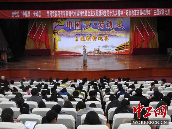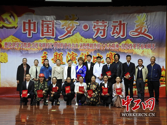 中工网讯 近日,云南省德钦县总工会、县委宣传部、县文明办、县直机关工委联合举办“中国梦·劳动美——学习贯彻习近平新时代中国特色社会主义思想和党的十九大精神·纪念改革开放40周年”主题演讲比赛,来自全县各个系统的13名职工参赛,全县200名职工到场观看。县委常委、宣传部部长出席活动并致辞。