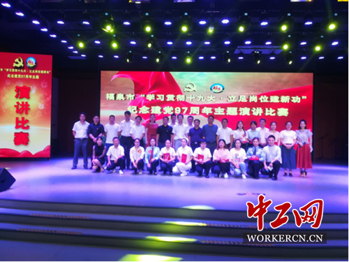 为隆重纪念中国共产党建党97周年,讴歌党的丰功伟绩,继承和发扬党的优良传统和作风,激励广大党员青年不忘初心,牢记使命,砥砺前行。由中共福泉市委组织部,中共福泉市委宣传部主办,共青团福泉市委具体承办,市总工会等群团部门共同协办的福泉市“学习贯彻十九大·立足岗位建功”纪念建党97周年主题演讲比赛于6月29日上午在市文化馆举行。