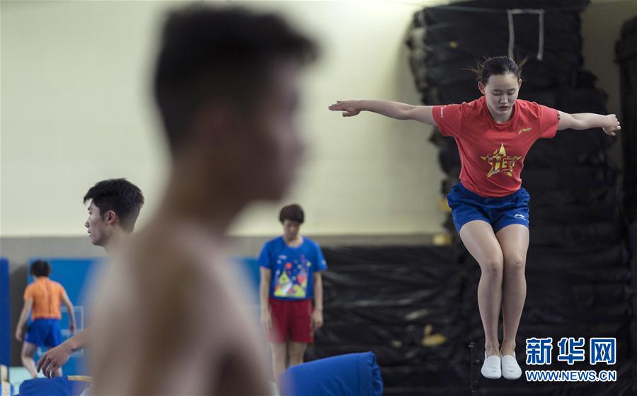8月9日,国家队队员任茜(右一)在训练中。 当日,中国国家跳水队在北京进行训练,备战2018雅加达亚运会。 新华社记者费茂华摄