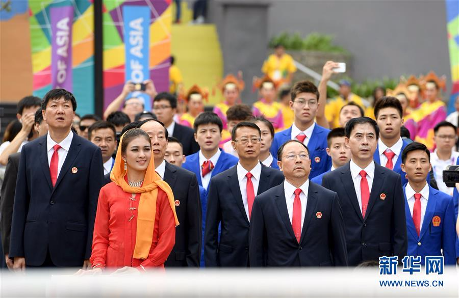 第十八届亚运会中国体育代表团在雅加达举行升旗仪式