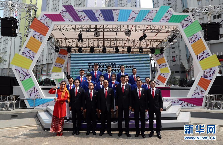 第十八届亚运会中国体育代表团在雅加达举行升旗仪式