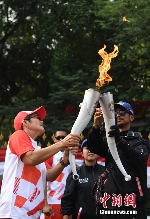 8月17日,第十八届亚运会火炬接力活动进入倒数第二天,亚运火炬当天在印尼首都雅加达的独立广场及总统府周边等地进行传递。 中新社记者 侯宇 摄