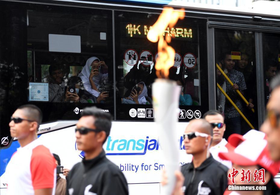 8月17日,第十八届亚运会火炬接力活动进入倒数第二天,亚运火炬当天在印尼首都雅加达的独立广场及总统府周边等地进行传递。 中新社记者 侯宇 摄