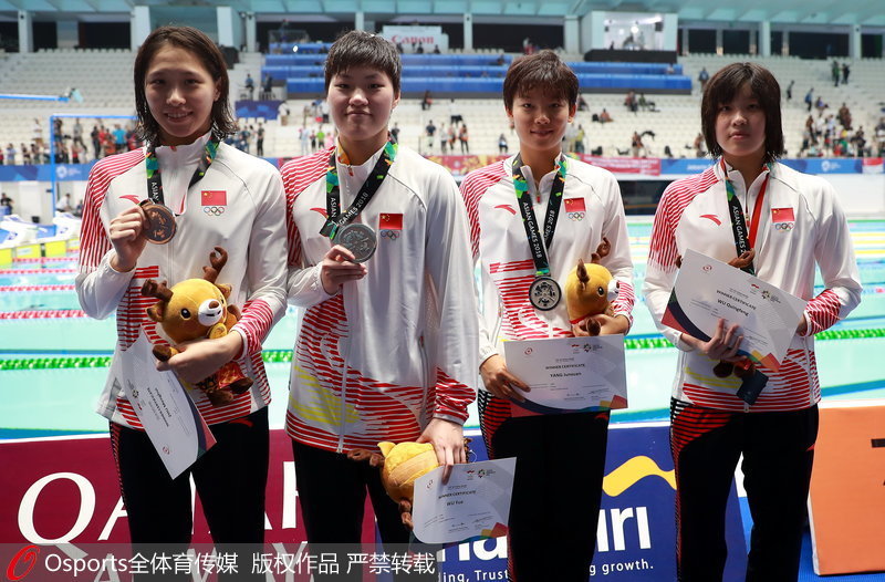 女子4x100米自由泳接力 中国队(朱梦惠、吴越、吴卿风、杨浚瑄)夺得亚军