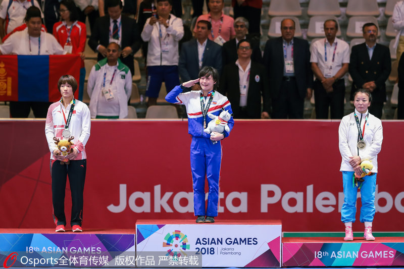 人民网北京8月21日电(李乃妍 实习生武帅男)北京时间昨日,雅加达亚运会摔跤女子自由式57公斤级决赛中,中国选手裴星茹遗憾收获银牌。(Osports全体育传媒专供人民体育 版权作品 严禁转载)