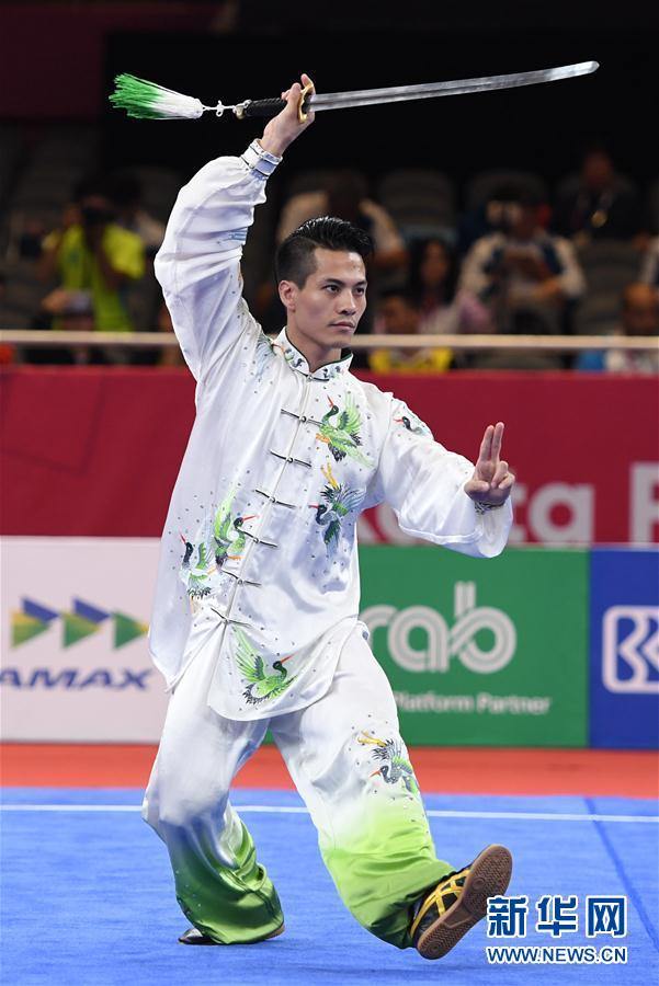 ↑8月22日,中国选手陈洲理在男子太极剑比赛中。 新华社记者张金加摄