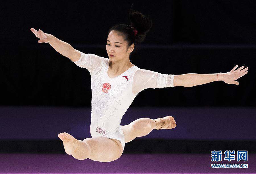 8月22日,中国队刘津茹在比赛中。 当日,在印度尼西亚雅加达举行的第18届亚运会体操女子团体决赛中,中国队以165.250分的总成绩获得冠军。 新华社记者朱炜摄