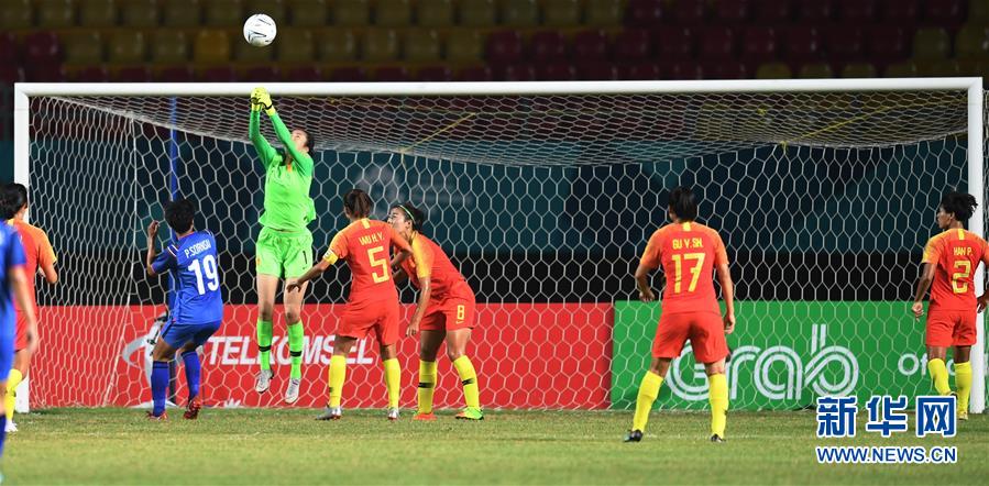 8月25日,在亚运会女足四分之一决赛中,中国队以5比0战胜泰国队。这是泰国队在中国队门前的一次进攻。 新华社记者 程敏 摄