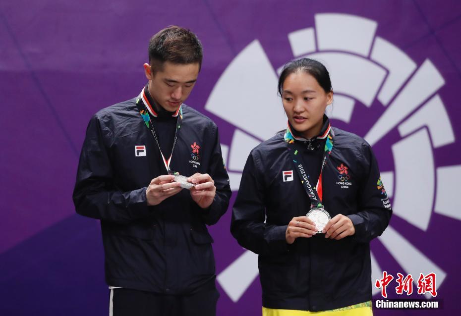8月27日晚,第18届亚运会羽毛球混双决赛,现世界排名第一的中国组合郑思维/黄雅琼大比分2-0(21-8、21-15)战胜中国香港组合邓俊文/谢影雪,夺得亚运混双冠军。王懿律/黄东萍组合获得铜牌。中新社记者 杜洋 摄
