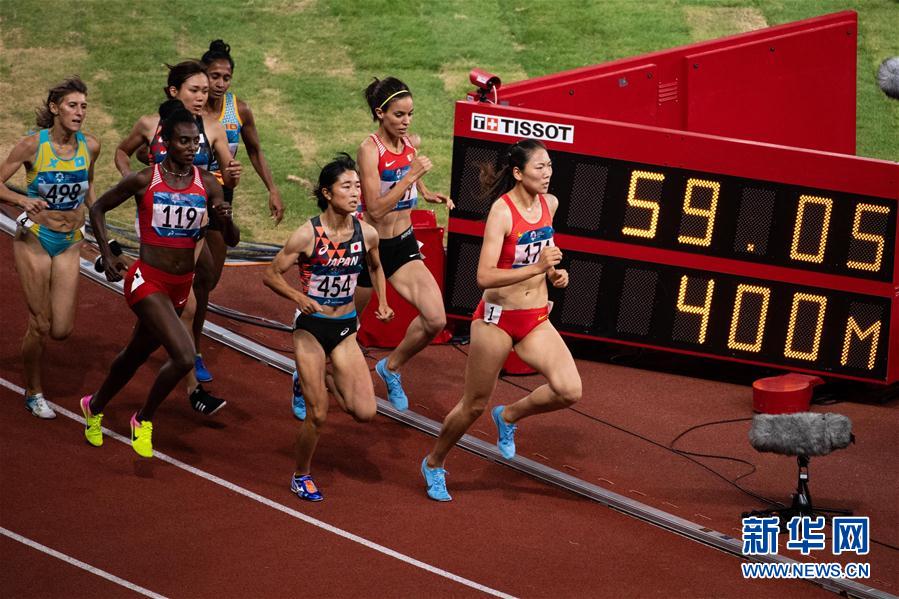 8月28日,中国选手王春雨(右一)在比赛中。 当日,在第18届亚运会田径女子800米决赛中,中国选手王春雨以2分01秒80的成绩夺冠。 新华社记者张金加摄