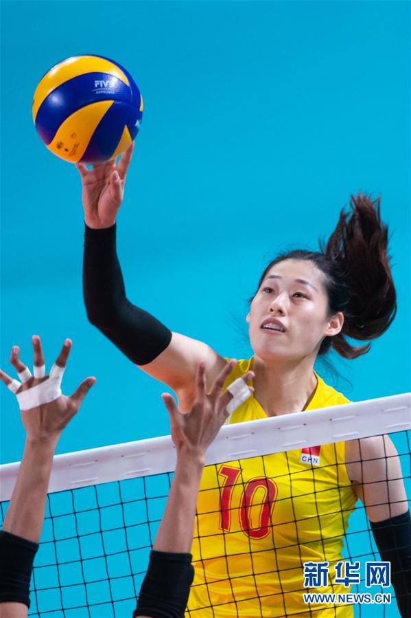 8月29日,中国队球员刘晓彤在比赛中进攻。 当日,在第18届亚运会女子排球四分之一决赛中,中国队以3比0战胜菲律宾队。 新华社记者张金加摄