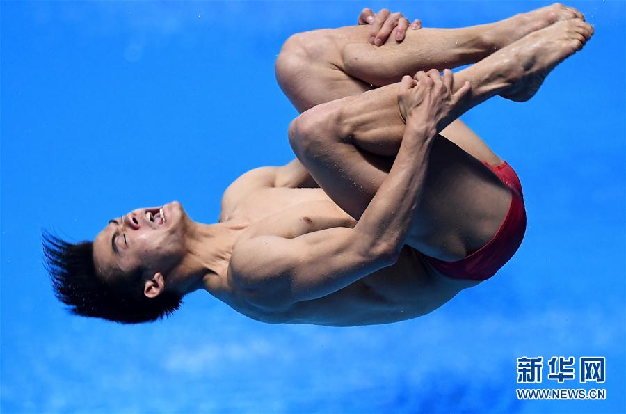 8月30日,中国选手彭健烽在比赛中。 当日,在第18届亚运会跳水男子1米跳板决赛中,中国选手彭健烽以462.15分的成绩获得冠军。 新华社记者岳月伟摄