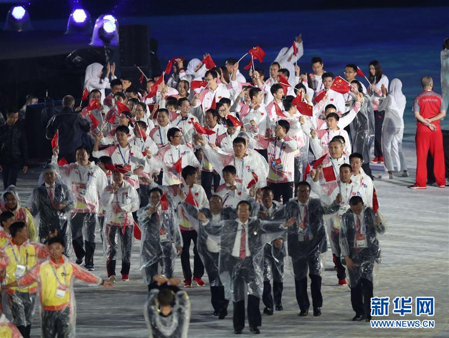 ↑这是中国代表团在闭幕式上入场。 新华社记者兰红光摄