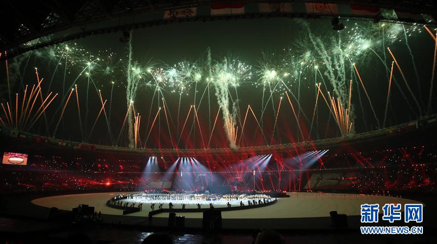 ↑9月2日,第18届亚运会闭幕式在印度尼西亚雅加达举行。 这是闭幕式现场。 新华社记者兰红光摄