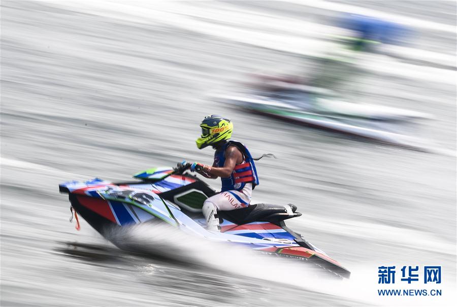 作为奥运会新增项目,棒垒球、空手道、攀岩、滑板、三人篮球加入了本届亚运会大家庭。田径4X400米混合接力、男子800米自由泳、女子1500米自由泳、4X100男女混合泳接力、跆拳道品势等小项在纳入2020年东京奥运会正式比赛项目后也均在雅加达亮相。非奥项目中,摩托艇、滑翔伞、桥牌、以及源自日本的柔术(寝技)、源自乌兹别克斯坦的库拉什、源自印尼和马来西亚的班卡苏拉以及流行于中亚的桑搏这四种格斗术,连同首次在亚运会上亮相的电子竞技一起,极大地丰富了亚运会的竞技内容。 这是8月25日,一名泰国选手在第18届亚运会摩托艇坐式原厂级比赛中。 新华社记者李响摄