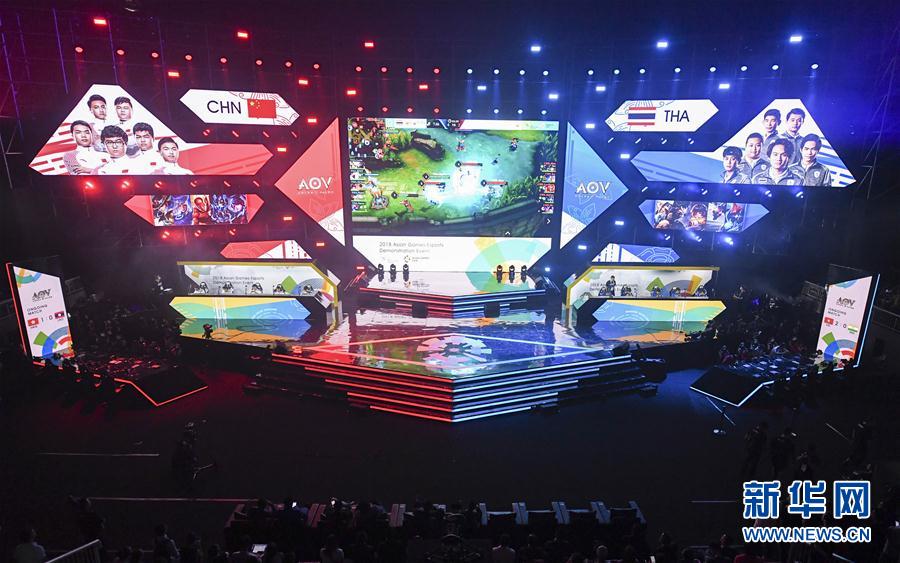 这是8月26日拍摄的第18届亚运会电竞项目《王者荣耀国际版(AOV)》比赛现场。 新华社记者张金加摄